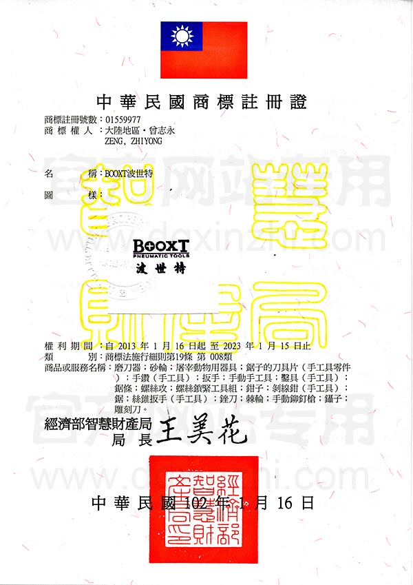 東莞市強勁五金工具有限公司(新志氣動工具)旗下主力品牌。自成立以來,一直傾力氣動工具、涂裝工具產品領域。以臺灣工廠專注研發制造,大陸公司策劃營銷與服務,多年來,BOOXT產品在中國大陸及東南亞市場迅速推廣,應用于家具、五金模具、電子電器、自行車、汽機車、船艦、高鐵、風能電機等行業... ...